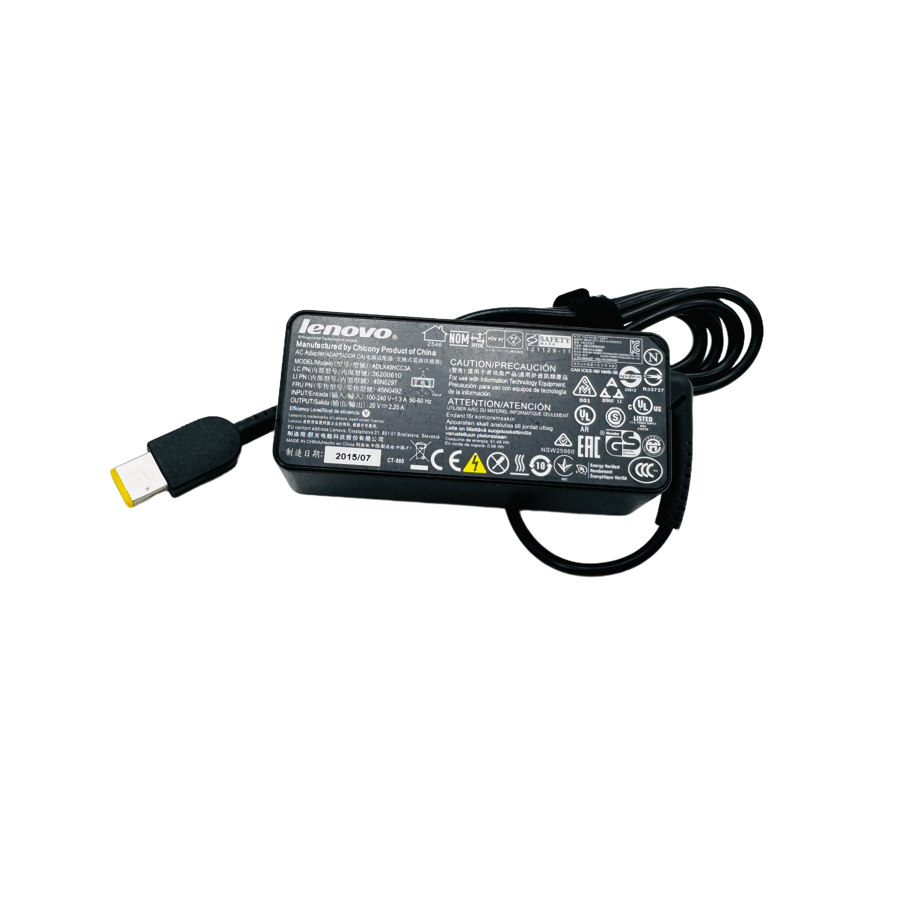 - Connector: Rectangular Lenovo Slim-Tip (yellow flat plug)